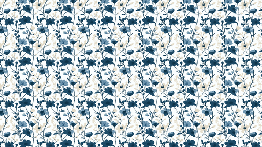 WonderMuralТапетът подчертава превъзходен модел на стилизирани цветя в оттенъци на тъмносиньо и бежово, създавайки елегантен контраст върху бял фон. Органични...