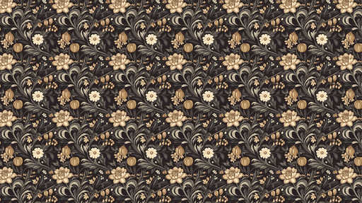 Прегледайте пълни подробностиTapete цветен винтидж с флорални мотиви | Елегантни цветни шаблони в черно и бежово