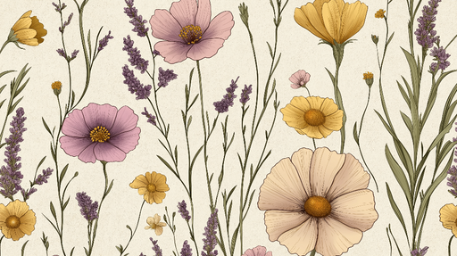 Прегледайте пълни подробностиДеликатни цветя тапет | Пастелен флорален модел на бежов фон