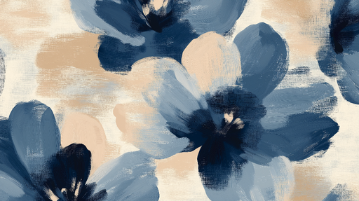 WonderMuralТази тапетна хартия представя модерен флорален модел с големи абстрактни цветя в нюанси на тъмносиньо и бежово. Динамичните и експресивни четки съз...