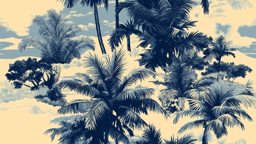 WonderMuralТази фототапетна хартия се отличава с поразителен модел на буйни палмови дървета в дълбоки сини и успокояващи бежови тонове, създавайки тропическа ...