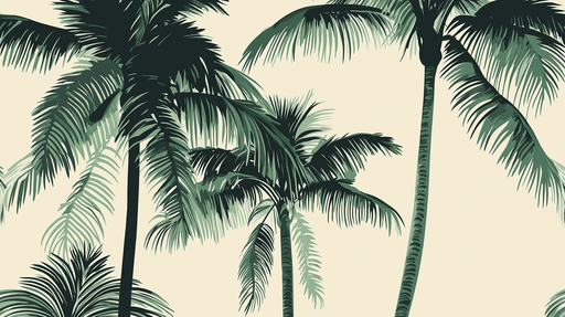 WonderMuralТази тапет илюстрира великолепен модел на палмови дървета, които изпъкват на светъл бежов фон. Тъмните листа, фино нарисувани, създават елегантен к...
