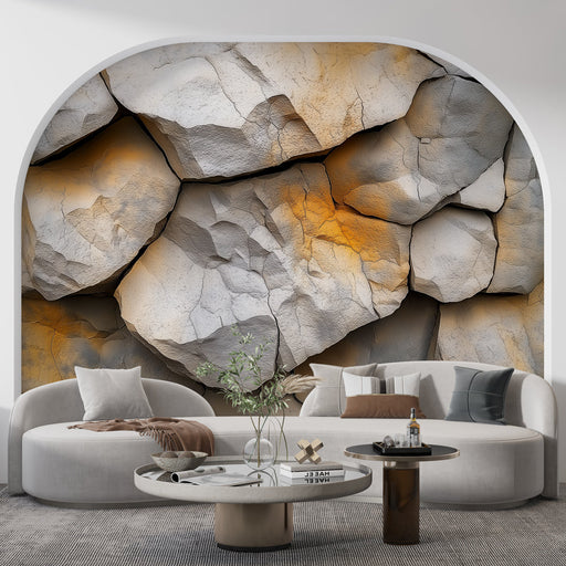 WonderMuralТази тапет има мотив от текстурирани скали, с нюанси на сиво и бежово, които създават естествен и суров вид. Повърхностите на камъните са внимателн...