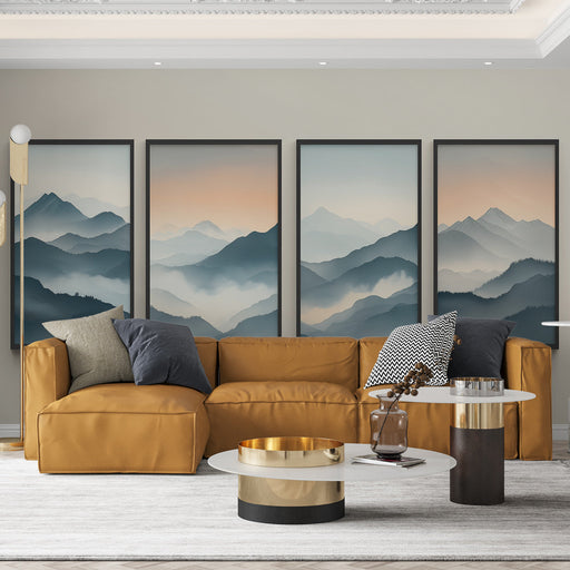 Прегледайте пълни подробностиTapete с илюстрация на платно на планини | Планински пейзаж в синьо и бежов градиент