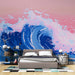 Тази тапет улавя мощна вълна, разбиваща се под деликатно пастелно небе, където меките розови нюанси се сливат перфектно с интензивността на океанското синьо. Пръските бяла пяна добавят динамичен ефект на движение, създавайки истинско усещане за свежест и морска енергия. Розовият фон носи успокояващ и поетичен акцент, красиво контрастиращ с дълбочината на синьото.