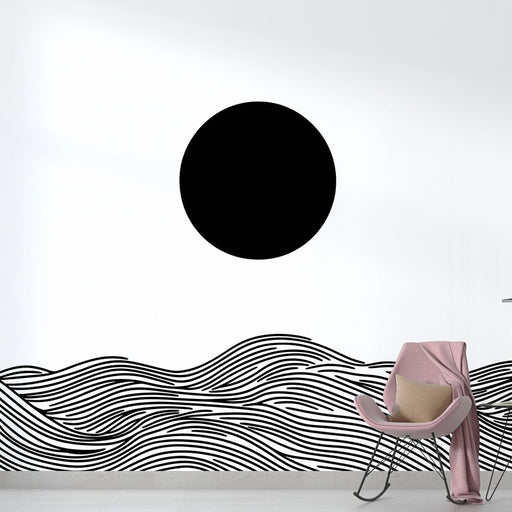 WonderMuralТази тапетна хартия се отличава с пленителен минималистичен дизайн, представящ черни вълни на бял фон. Художествената композиция напомня на абстрак...