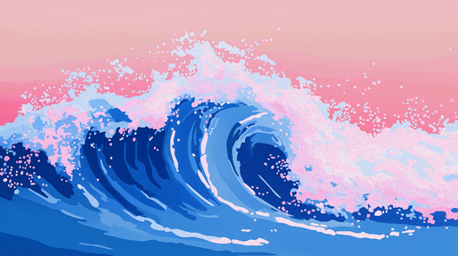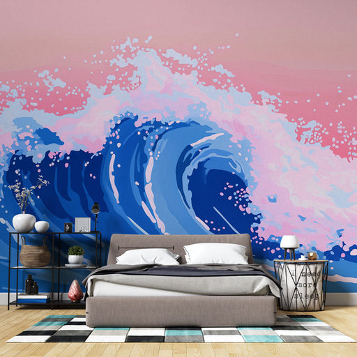 WonderMuralТази тапет улавя мощна вълна, разбиваща се под деликатно пастелно небе, където меките розови нюанси се сливат перфектно с интензивността на океанск...
