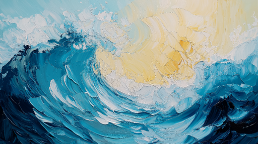 WonderMuralТази тапет улавя силата и красотата на разбиваща се вълна с текстурирани четки, създавайки поразителен ефект на маслена картина. Нюансите на дълбок...