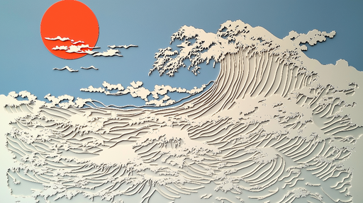Прегледайте пълни подробностиТапет вълна | Текстурирана повърхност с голяма вълна и червено слънце