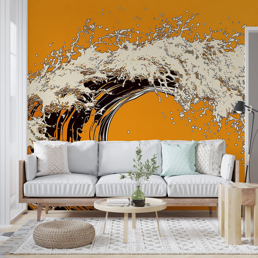 WonderMuralНашето тапет се отличава с впечатляващ дизайн на стилизирана вълна на ярък оранжев фон, улавяйки както енергията на водата, така и топлината на цве...