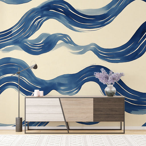 WonderMuralТази тапет включва завладяващ абстрактен модел на флуидни вълни в нюанси на синьо върху кремав фон. Всяка вълна създава усещане за движение, придав...