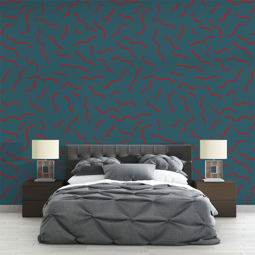 Studio SamaОткрийте нашия тапет вълна с модерен скандинавски дизайн с червени и тюркоазени цветове на тъмен фон. Този вълнообразен модел носи динамичен и съвр...