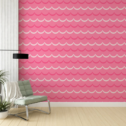 Studio SamaДобавете игрива и радостна атмосфера на вашето пространство с нашата тапет с розов и бял вълнообразен мотив. Този динамичен дизайн внася свежест и ...