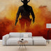 Тази завладяваща тапет представя силуета на емблематичен каубой, излизащ от облаци прах и топли цветове, вариращи от оранжево до червено. Този смел модел събужда духа на класическите уестърни, като внася динамична и приключенска атмосфера във вашия интериор.