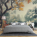 Този изтъркан шик тапет илюстрира очарователен пейзаж, където величествените дървета стоят сред буйна растителност. Топлите есенни нюанси, с оттенъци на оранжево, жълто и червено, предлагат топла и приветлива атмосфера.