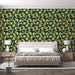 Тапетът с мурал представя буйен модел от листа на гинко в ярки нюанси на зелено и жълто. Привличайки спокойствието на природата, този дизайн придава елегантно и свежо докосване на интериора ви. Деликатните листа се открояват на фон от тъмно, създавайки удивителен контраст, който осветява пространството.