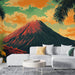 Открийте нашата стенна тапет, изобразяваща величествен вулкан, заобиколен от буйна растителност, създаваща тропическа атмосфера. Играта на топли залезни цветове, смесващи оранжеви и зелени нюанси, създава жива и приветлива атмосфера, идеална за освежаване на вашия интериор.