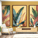 Имитация на стенопис тапет | Цветни листа на бледожълт фон