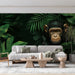 Тапет маймуна в джунглата | Илюстрация на шимпанзе, излизащо от гъста зеленина