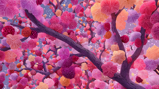 Прегледайте пълни подробностиТапет с ярки цветя | Дърво с нюанси на розово, лилаво и оранжево цветя