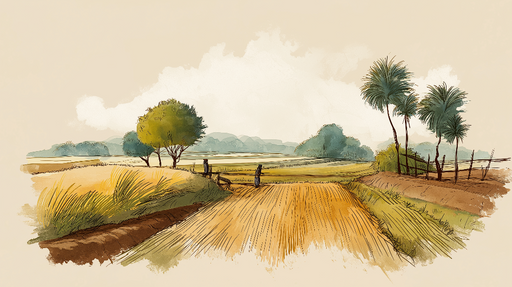 WonderMuralТази красива тапета изобразява спокоен селски пейзаж, където златните полета се простираят докъдето може да видиш, пресечени от плодородни дървета ...