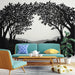 Тази уникална тапетна стенопис се отличава с чист и модерен дизайн, подчертавайки стилизирана силует на дървета на светъл фон. Контрастът между дълбокото черно и яркото бяло създава поразителен визуален ефект, който привлича вниманието и добавя артистично измерение към вашия интериор.