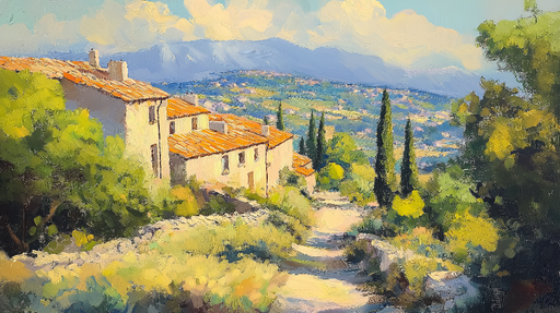 WonderMuralТази тапет разкрива великолепен Провансалски пейзаж, изобразяващ типични къщи с керемидени покриви, които нежно се простират по криволичещ път межд...