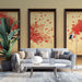 Тапетът с мурал предлага великолепна композиция от картини, имитиращи произведения на изкуство, изобразяващи дървета с есенни листа в ярко червени тонове. Мекотата на фона и деликатността на листата създават спокоен и топъл атмосфер, идеален за придаване на изкуствен допир към вашия интериор.