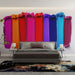 Доминиращи цветове като червено, оранжево и виолетово са идеални за енергизиране на стаята, докато синьо и розово внасят нотка свежест и баланс. Съчетавайте го с неутрални мебели, за да подчертаете наистина този взрив от цветове.