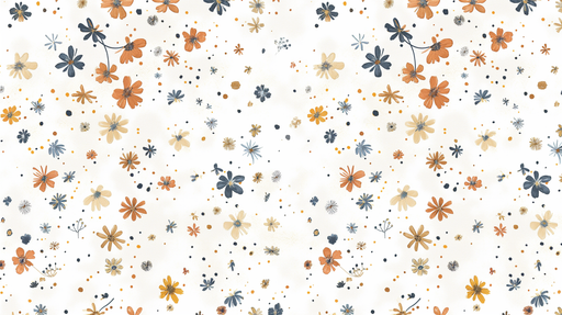 Прегледайте пълни подробностиМурален тапет цветя | Малки оранжеви и сини цветя на бял фон