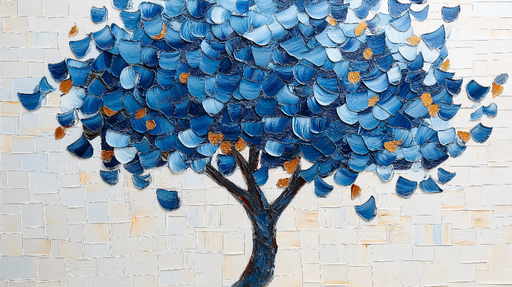 WonderMuralТази тапет разполага с съвременен дизайн с дърво с ярка листна маса, нарисувано в различни нюанси на синьото. Дебелите четки добавят богата текстур...