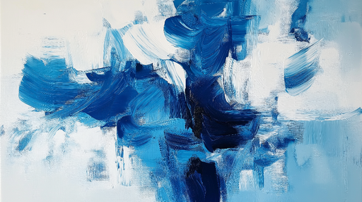 WonderMuralТази завладяваща илюстрация представя динамична композиция от енергични четки в нюанси на синьо, черно и златно, изплескани с бели акценти за пораз...