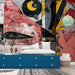 Тази тапетна хартия се отличава с уникален и артистичен дизайн с износена и деградирала текстура. Ярките цветове на червено, жълто, черно и бяло се смесват с люспи от отлепена боя, създавайки ефект на старо графити върху градска стена.