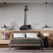 Тази тапет подчертава внушителен фар, стоящ на скала, заобиколен от бурни вълни. Черно-белият дизайн създава драматична и успокояваща атмосфера едновременно, предизвиквайки силата на морето и спокойствието на крайбрежен убежище.