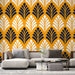 Мурален тапет с шарка на листа | Винтидж оранжево и черно