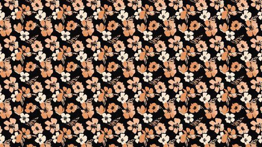Тапетът представя завладяващ цветен модел, съставен от нежни цветя в розово, бяло и оранжево, хармонично подредени върху черен фон. Този удивителен...