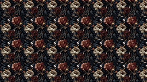 Тапет с цветя винтидж | Тъмни цветя на черен фон с нежни детайли