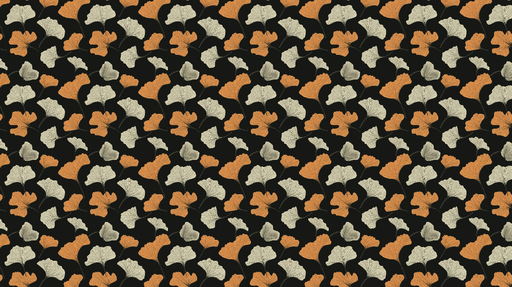 WonderMuralТази ексклузивна тапета разполага със стилизиран модел на листа от гинко, комбиниращ ярки нюанси на оранжево и крем върху дълбок черен фон. Ударния...