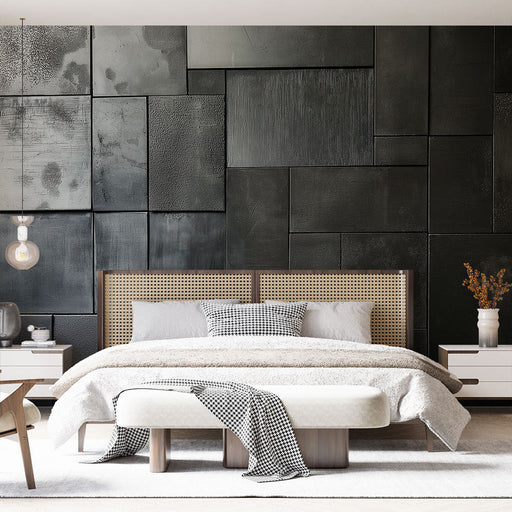 WonderMuralТапетът с мурал представя модел, вдъхновен от индустриален метал, с поредица от панели в различни текстури, простиращи се от дълбоко черно до сребр...