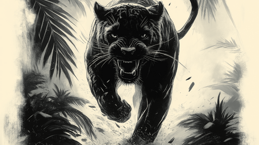 WonderMuralТази впечатляваща тапетна фотография представя ревящ черен пантер, заснет в динамична поза сред плодородно растителност. Неговите пронизващи очи и ...