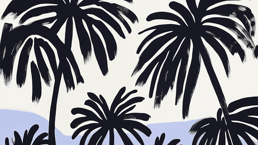 WonderMuralТази завладяваща стенописна тапет илюстрира големи черни силуети на палми, създавайки смел контраст на светъл фон. Щрихите с четка добавят артистич...