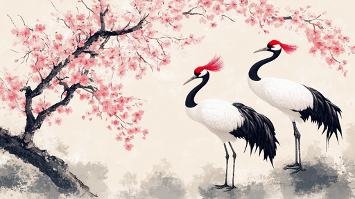 Art'loloОткрийте нашата великолепна японска пейзажна тапетна стенопис с елегантни жерави под величествено дърво от черешов цвят. Това художествено изображе...