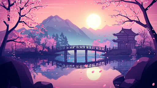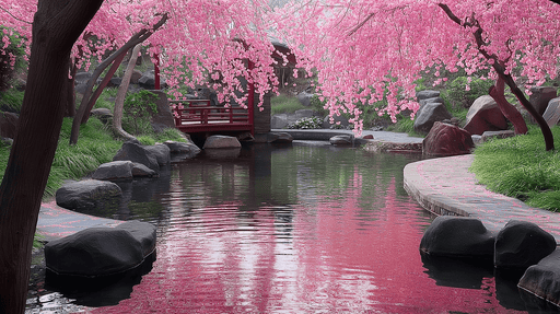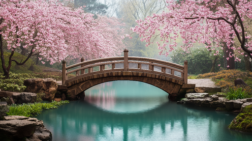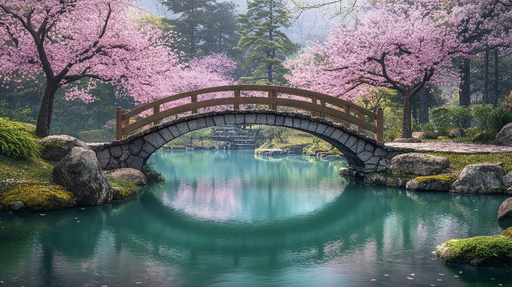 Art'loloТрансформирайте интериора си с този japanese-bridge-tapet, който улавя спокойната красота на дзен градина в пълен разцвет. Възхищавайте се на череш...