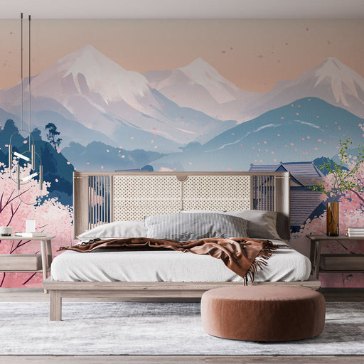 WonderMuralТази тапет предизвиква очарователен японски пейзаж, с величествени планини, които гордо се издигат на заден план. Нюансите на розово от черешовите ...