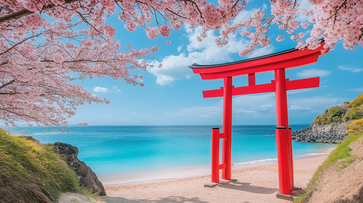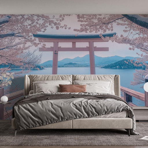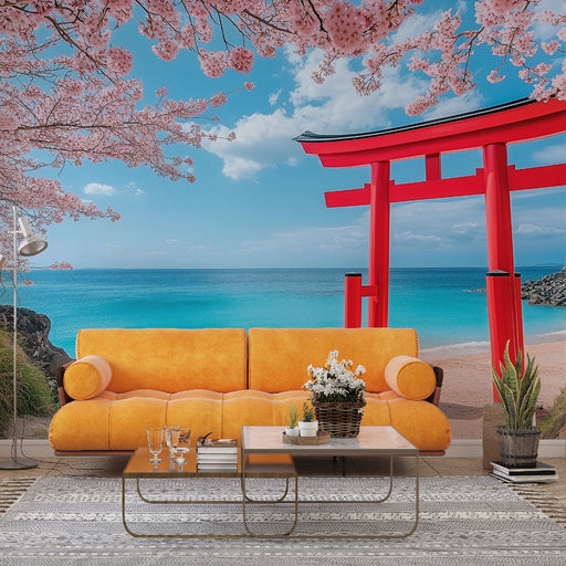 Прегледайте пълни подробностиФототапет японски плаж | Тории и черешови цветове