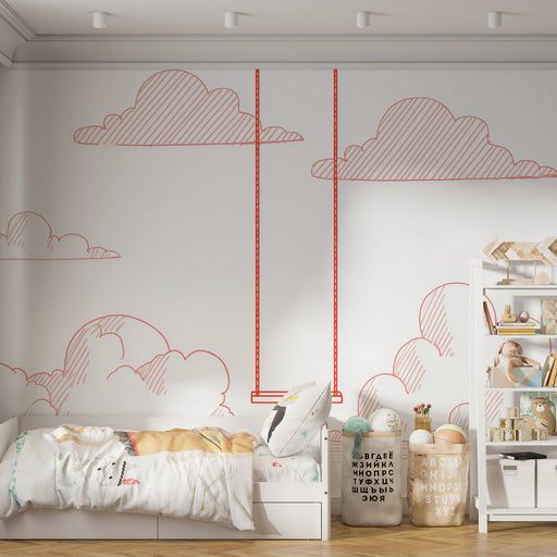 WonderMuralТапетът представлява успокояваща въздушна сцена, включваща меки ръчно рисувани облаци и навесен люлеещ се качулка, която поканява на мечтане. Делик...