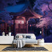 Тази завладяваща тапета включва великолепен осветен храм в сърцето на черешови цветове, създавайки спокойна и очарователна атмосфера. Оттенъците на лилаво се сливат с меката светлина на фенерите, предлагайки спокойна обстановка, идеална за пространство за релаксация.