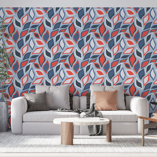 Studio SamaТези тапети с листа се отличават с елегантен геометричен модел в нюанси на синьо, червено и бяло. Идеални за добавяне на модерен и живителен акцент...