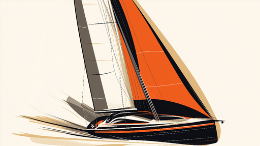 Прегледайте пълни подробностиФототапет платноходка | Динамична илюстрация на платноходка с оранжеви и черни платна