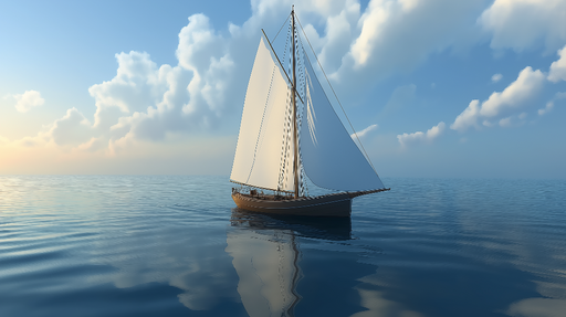 WonderMuralТази тапета илюстрира величествена ветроходна лодка, плаваща по спокойни води, под синьо небе, осеяно с меки облаци. Нежното отражение на лодката в...